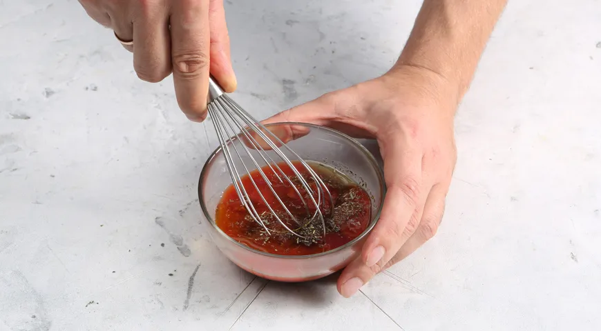 Замороженные грибы выложите в дуршлаг и дайте оттаять. Томатный соус перемешайте венчиком с соевым и 2 ст. л. оливкового масла. Приправьте сахаром, орегано, солью и молотым перцем по вкусу.