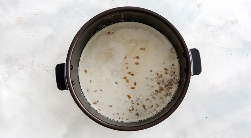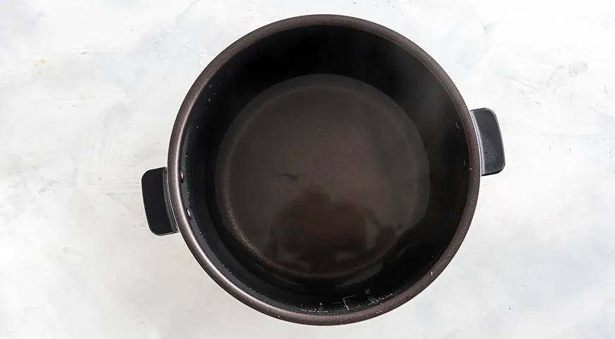 Подготовьте все ингредиенты каши и мультиварку. Влейте в чашу питьевую воду. Установите температуру мультиварки в пределах 160–170°C. Доведите воду до кипения.