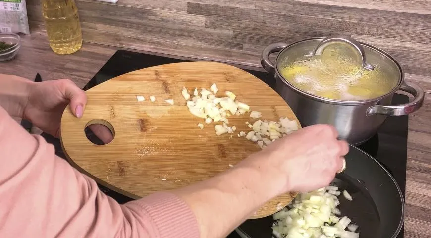 Натертую морковку обжарить с нарезанным луком на сливочном масле.